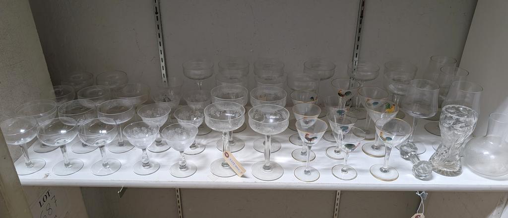 Lot 603: Clear Glass Barware / Stemware Incl. Rooster & Grapevine Patterns.