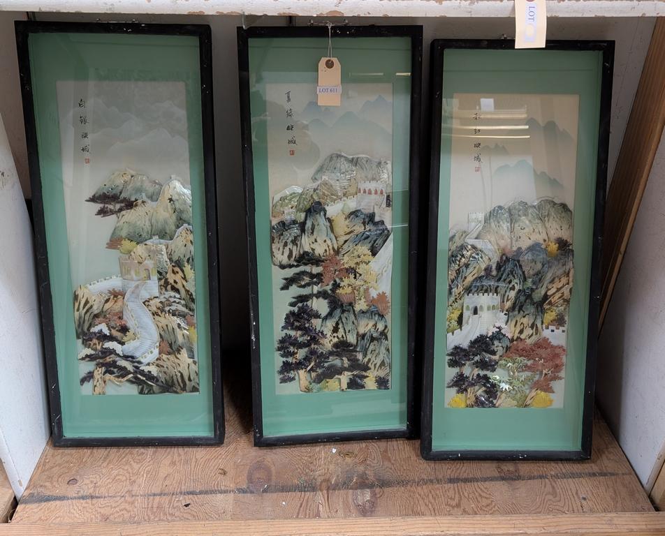 Lot 611: (3) Chinese Shadow Box Framed Soft Stone Landscape Panels.