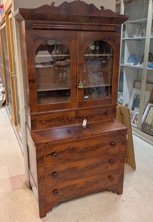 Lot 628: Flame Mahogany 5-Drawer Drop Front Secretaire.