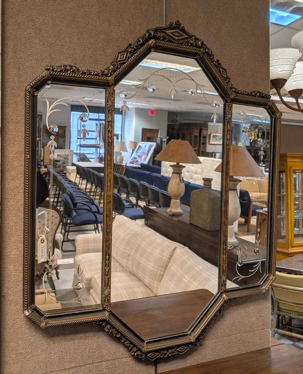 Lot 637: Art Deco Style Triptych Mirror with Etched Design.