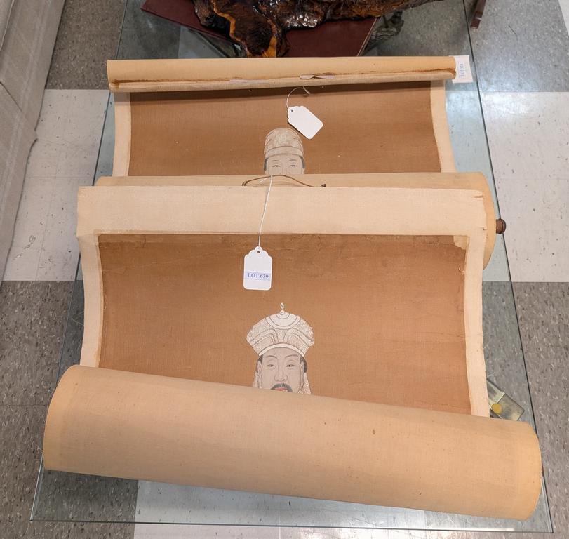 Lot 639: Pair of Chinese Ancestral Portraits, Gouache On Paper