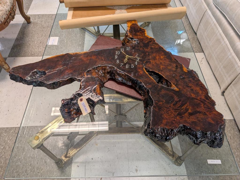 Lot 640: Burl Wood Wall Clock.