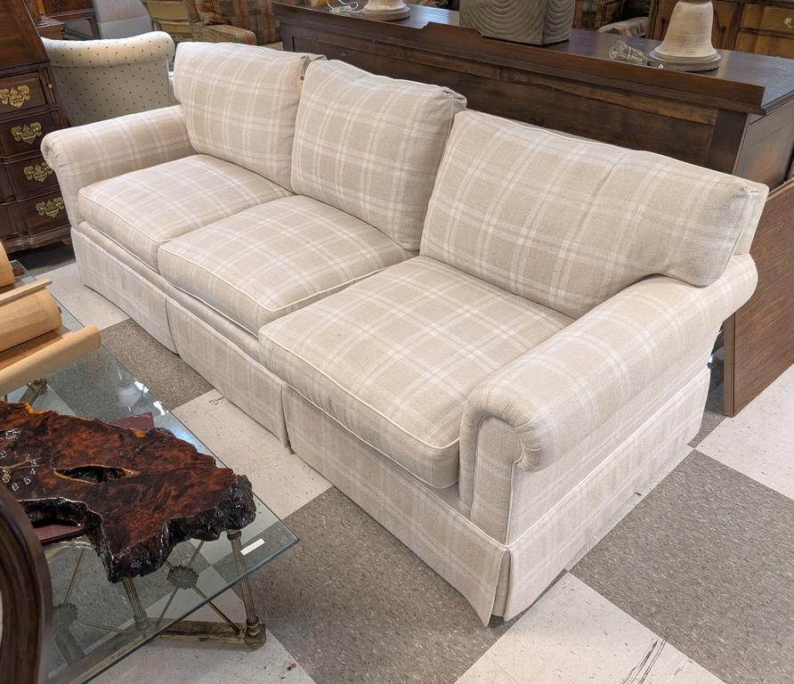 Lot 642: Contemporary Sofa with Plaid Fabric Upholstery.