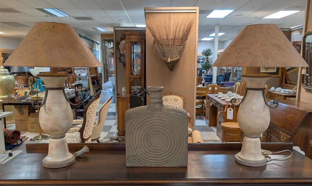 Lot 643: Pair of Contemporary Table Lamps and A Large Ceramic Bottle.