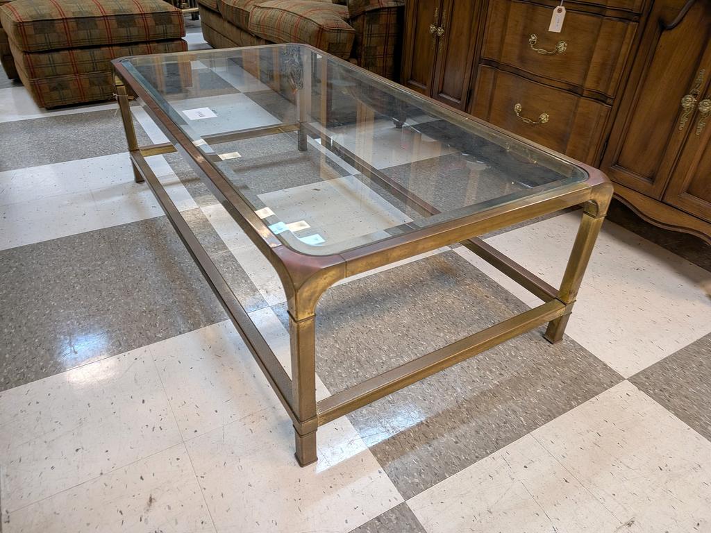 Lot 645: Rectangular Brass and Glass Coffee Table.