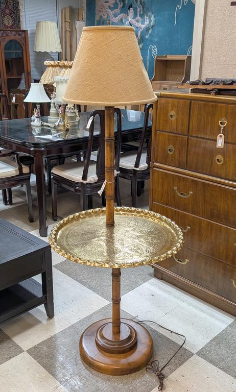Lot 754: Brass Tray Lamp Table with Bamboo Support.