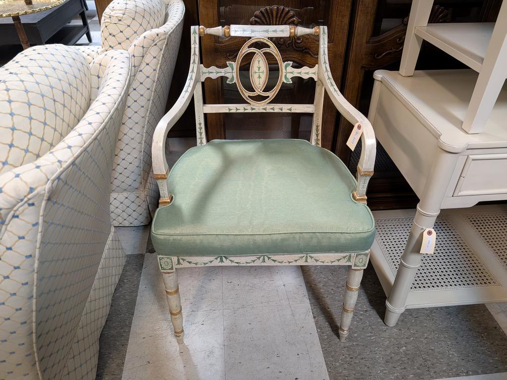 Lot 756: George III Style Painted Armchair with Cane Seat and Cushion.
