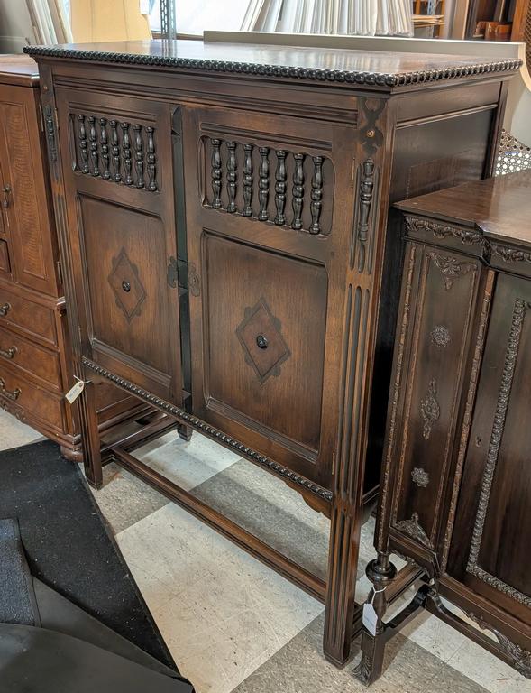 Lot 760: Berkey & Gay Jacobean Walnut 2-Door Hutch with 3 Shelves.
