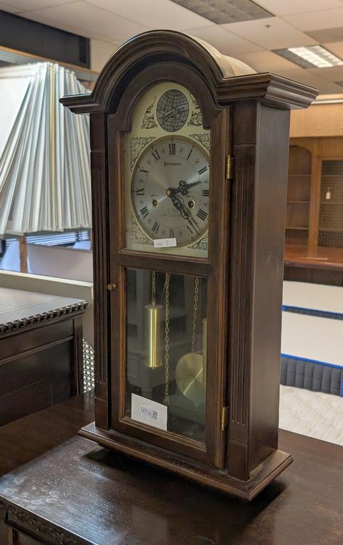 Lot 761: Parliament Wood Cased Wall Clock. 31 Day, Time, Chime & Strike.