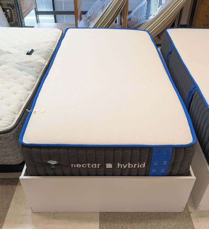 Lot 767: Twin Size Platform Bed with Storage and Nectar Hybrid Mattress.