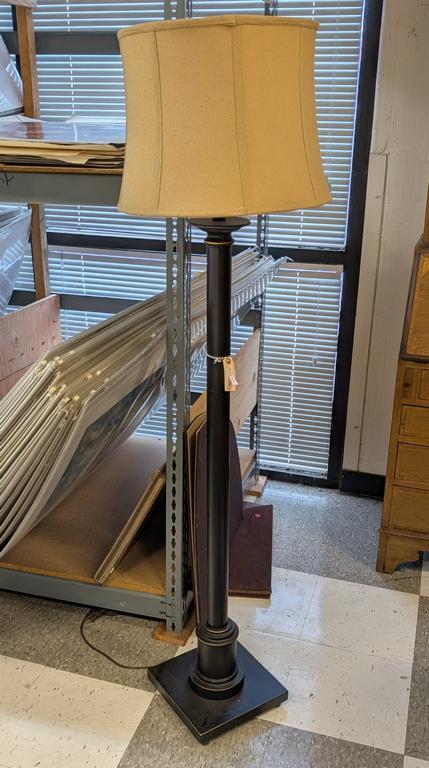 Lot 770: Contemporary Black Metal Floor Lamp with Gilt Edging.