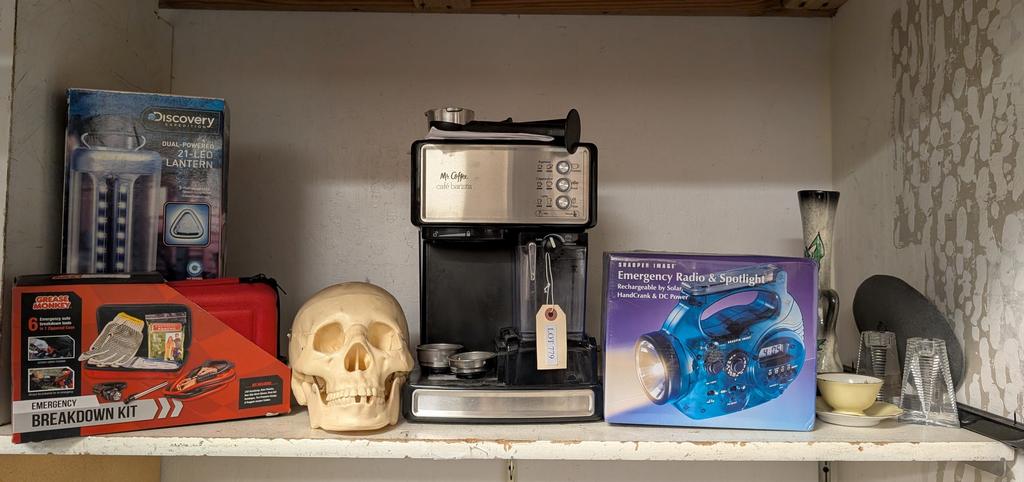 Lot 779: Shelf of Household Items Incl. Espresso Machine.