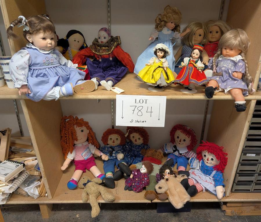 Lot 784: (2) Shelves of Asstd. Dolls.