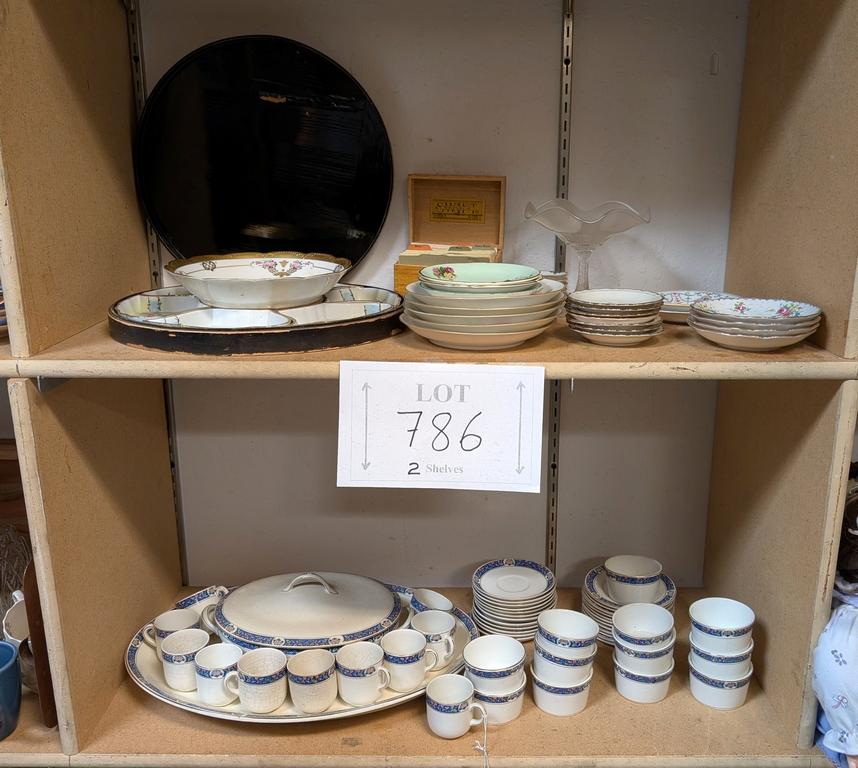 Lot 780: (2) Shelves of Tableware and Coffee Service.