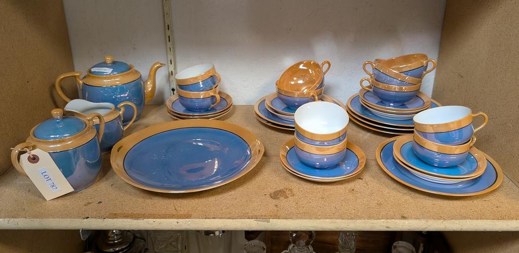 Lot 787: Japanese Iridescent Orange & Blue Tea Service.