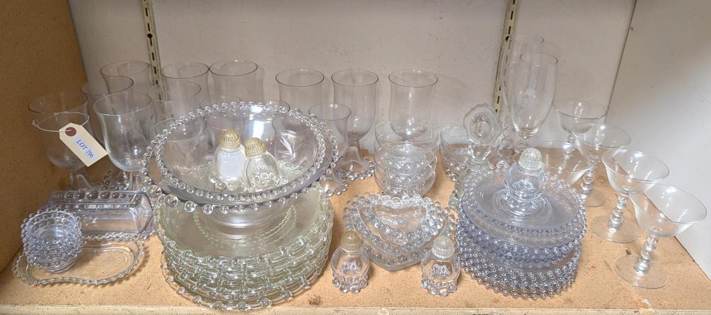 Lot 796: Shelf of Hobnail Glass Incl. Stems, Bowls, Dishes.
