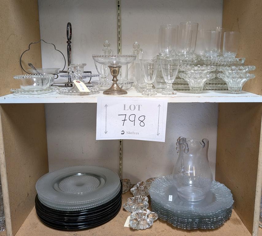 Lot 798: (2) Shelves of Glassware Incl. Hobnail Glass, Large Plates.