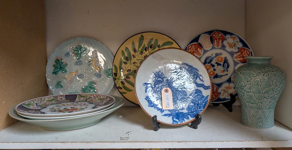 Lot 800: Group of Porcelain Items Incl. Green Charger and Vase.