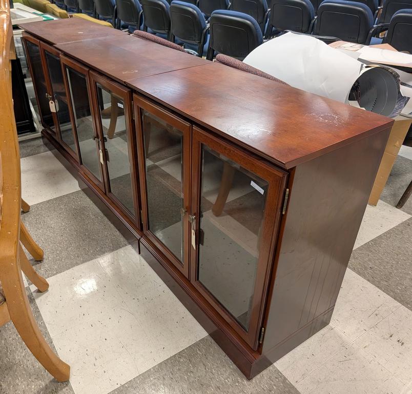 Lot 859: (3) Contemporary Mahogany 2-Door Glass Front Low Bookcases.