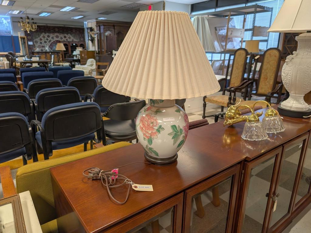 Lot 860: Asian Porcelain Table Lamp with Floral Decoration.