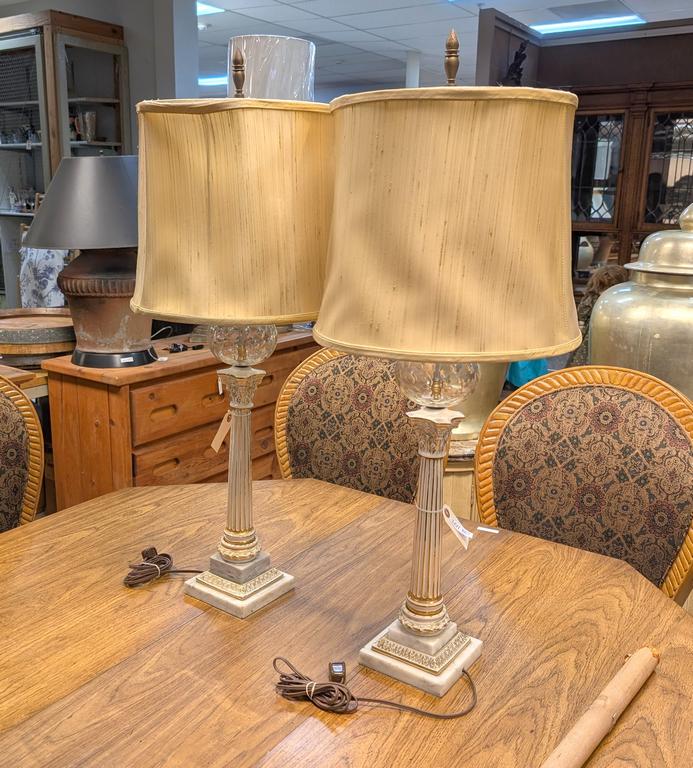 Lot 867: Pair of Classical Column Form Table Lamps On Marble Base.