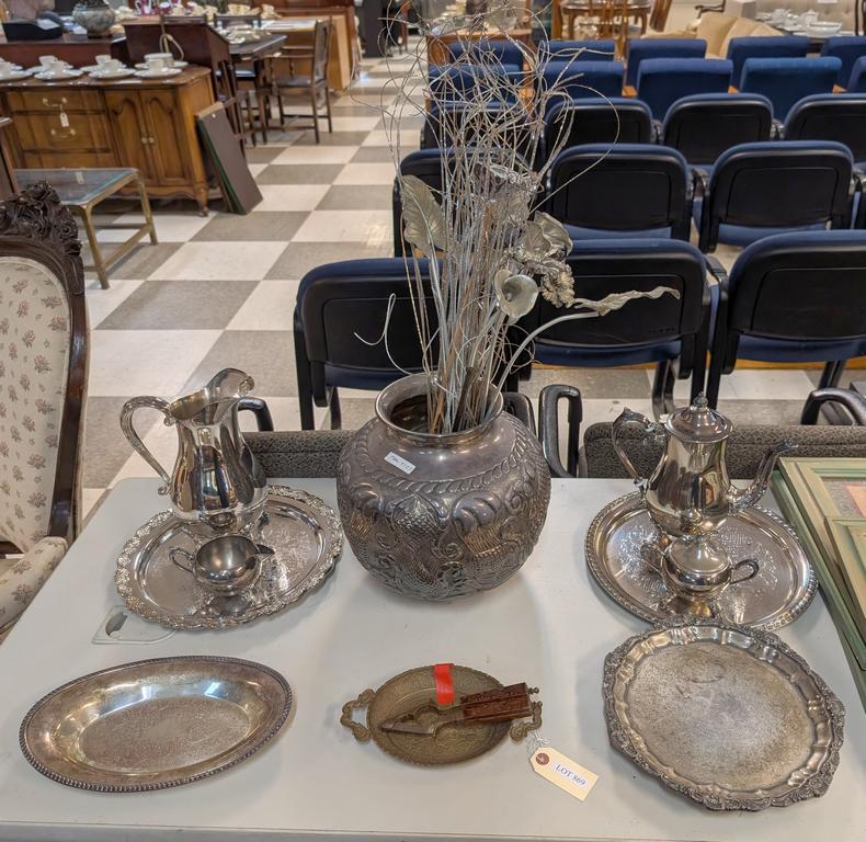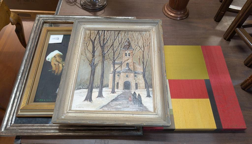 Lot 875: (2) Oil Paintings and A Silk Panel