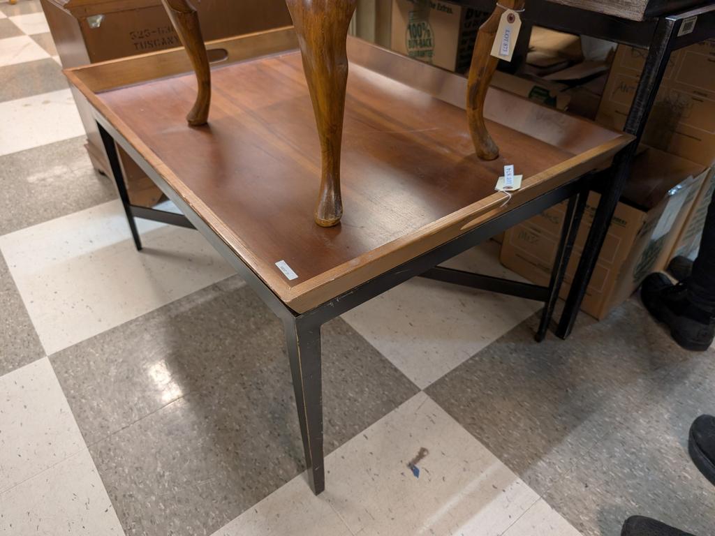 Lot 874: Walnut Tray Top Coffee Table On Metal Base.
