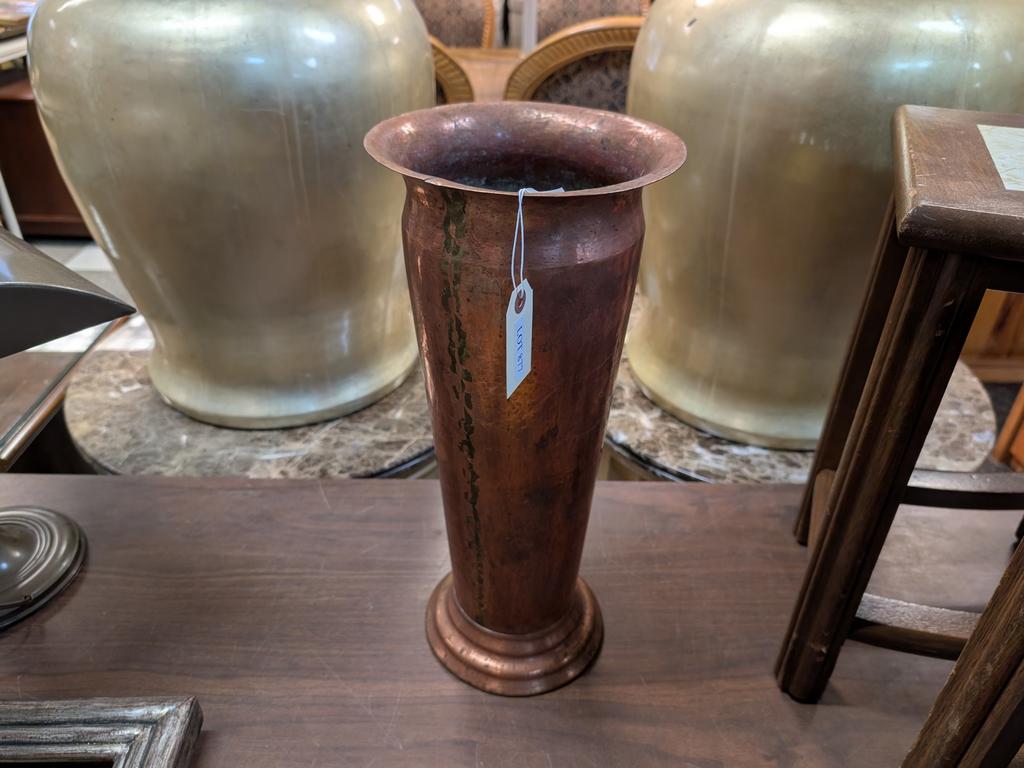 Lot 877: Hand Hammered Copper Vase / Umbrella Stand. 18" H.