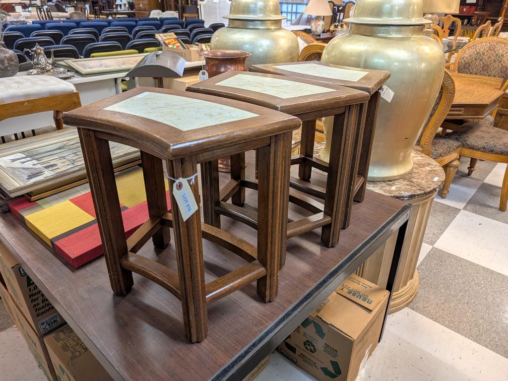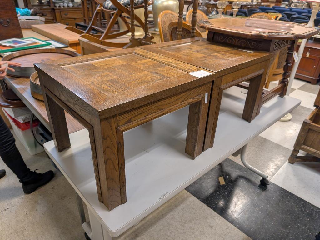 Lot 899: Pair of Oak Parquet Top Side Tables.