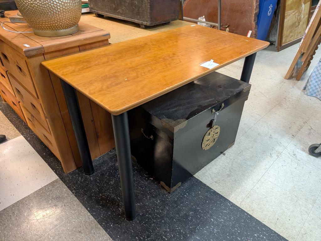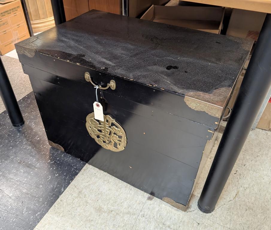 Lot 884: Asian Black Lacquered Tin Lined Tea Trunk.