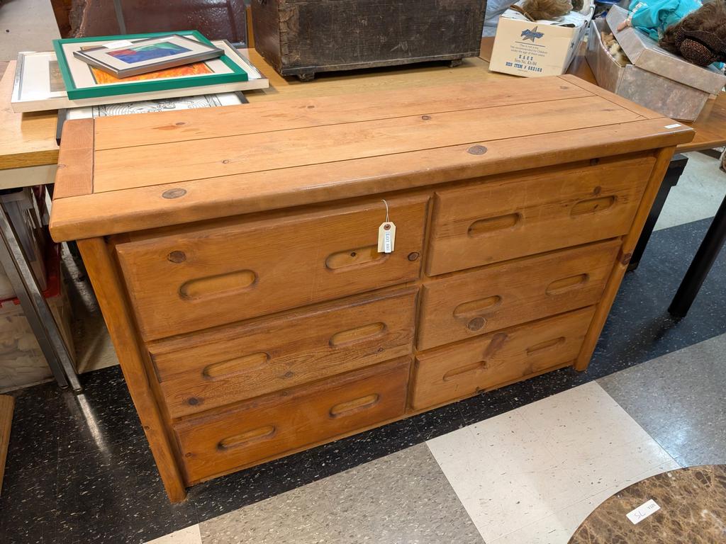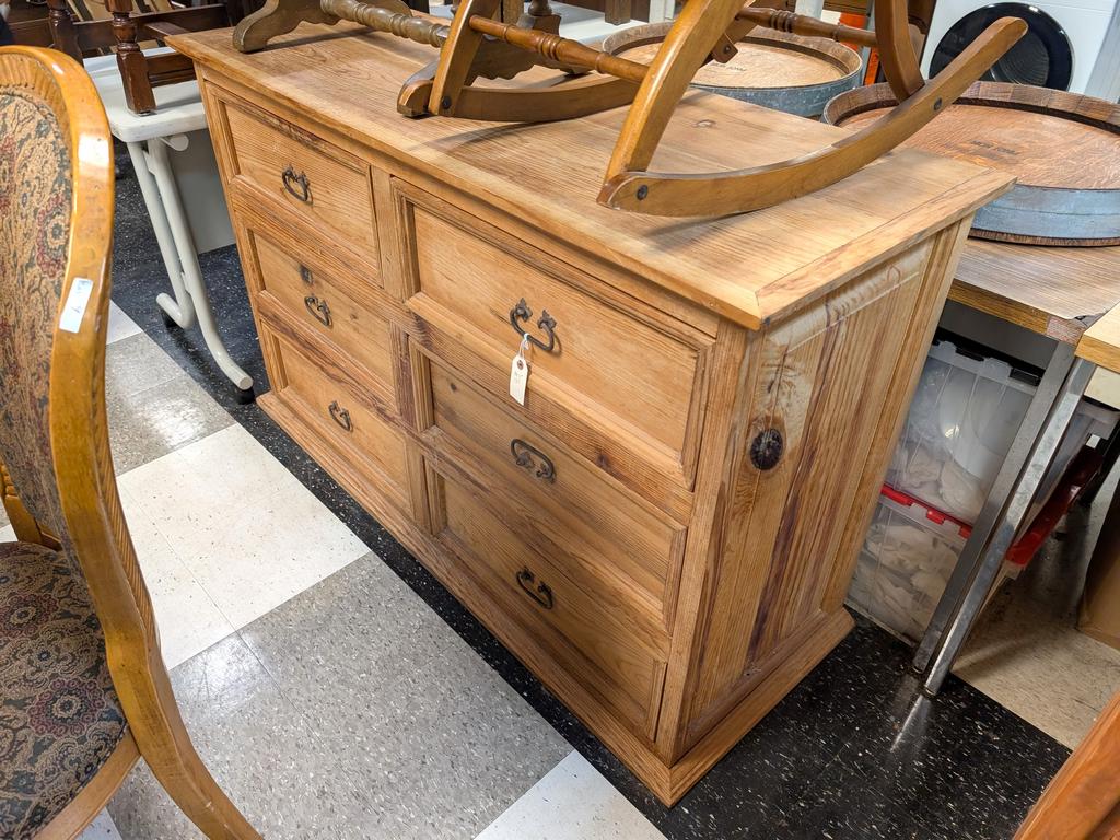 Lot 886: Country Pine 6-Drawer Dresser with Iron Pulls.