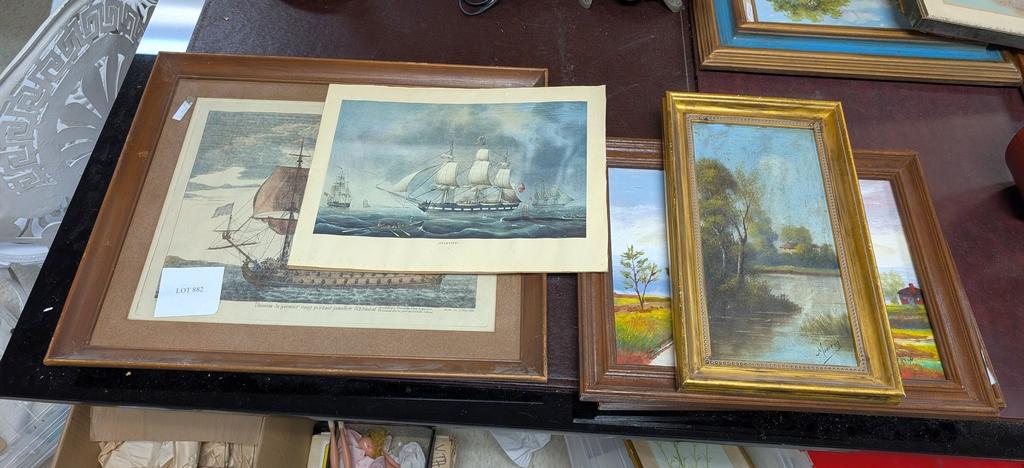 Lot 881: Group of Decorative Artwork; 2 Landscapes & Oriental Picture.