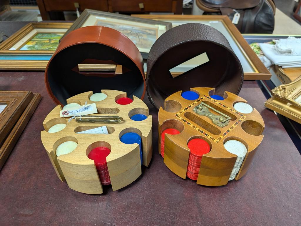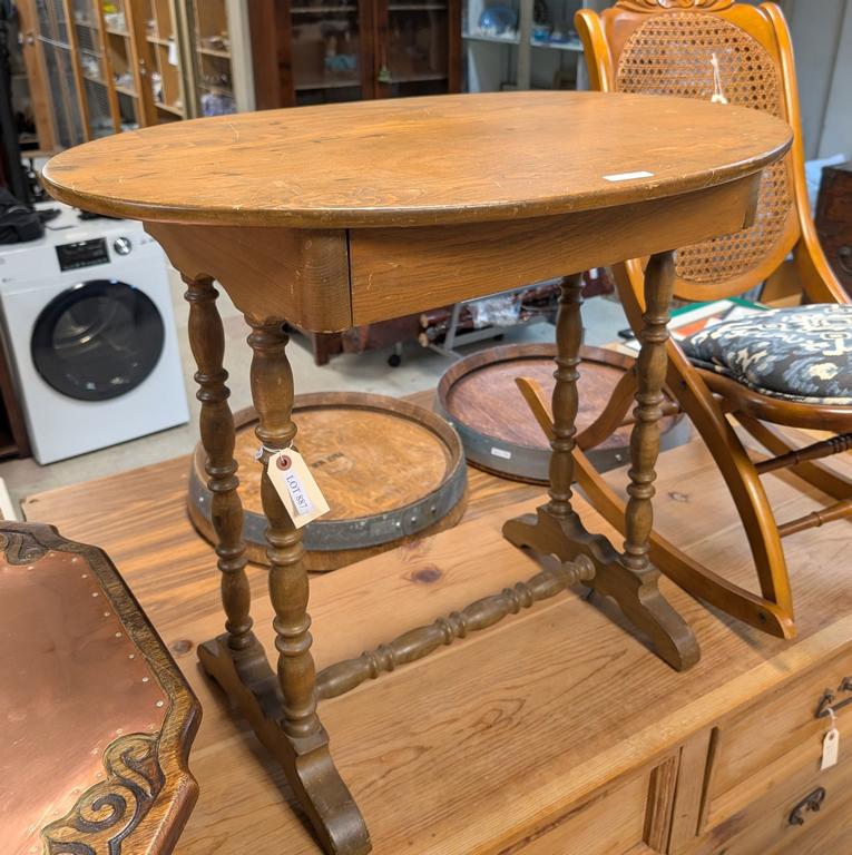 Lot 900: Pair of Oak Wine Barrel End Caps As Lazy Susans.