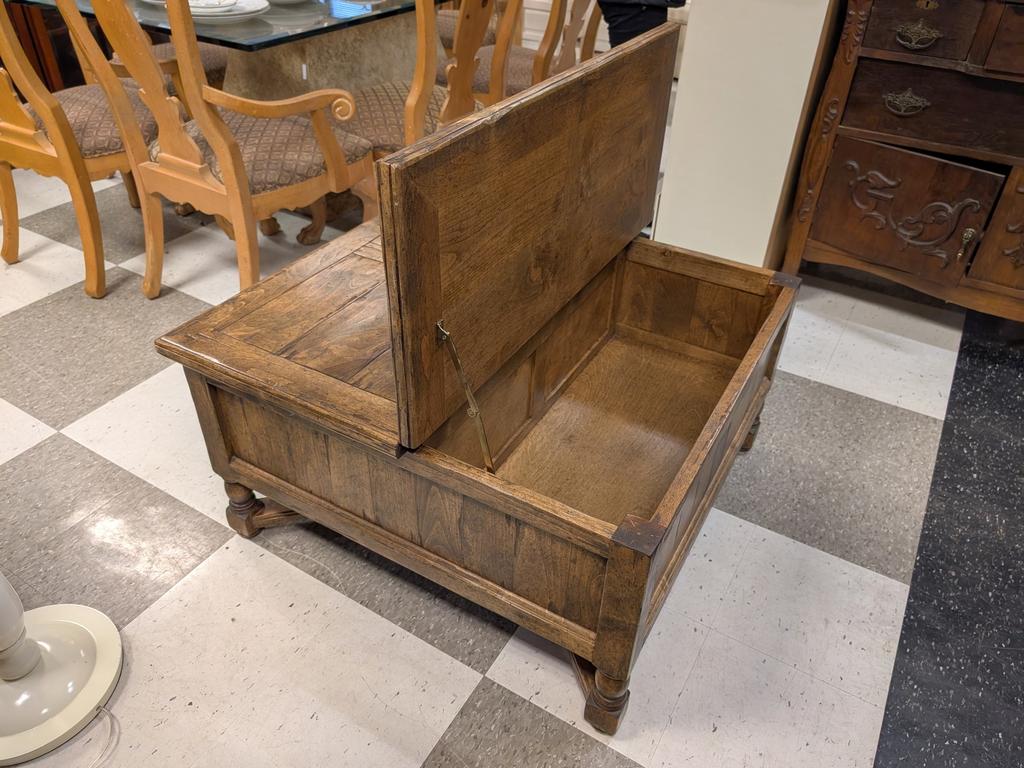 Lot 888: Contemporary Oak Coffee Table with 4 Storage Drawers and Lift Top.
