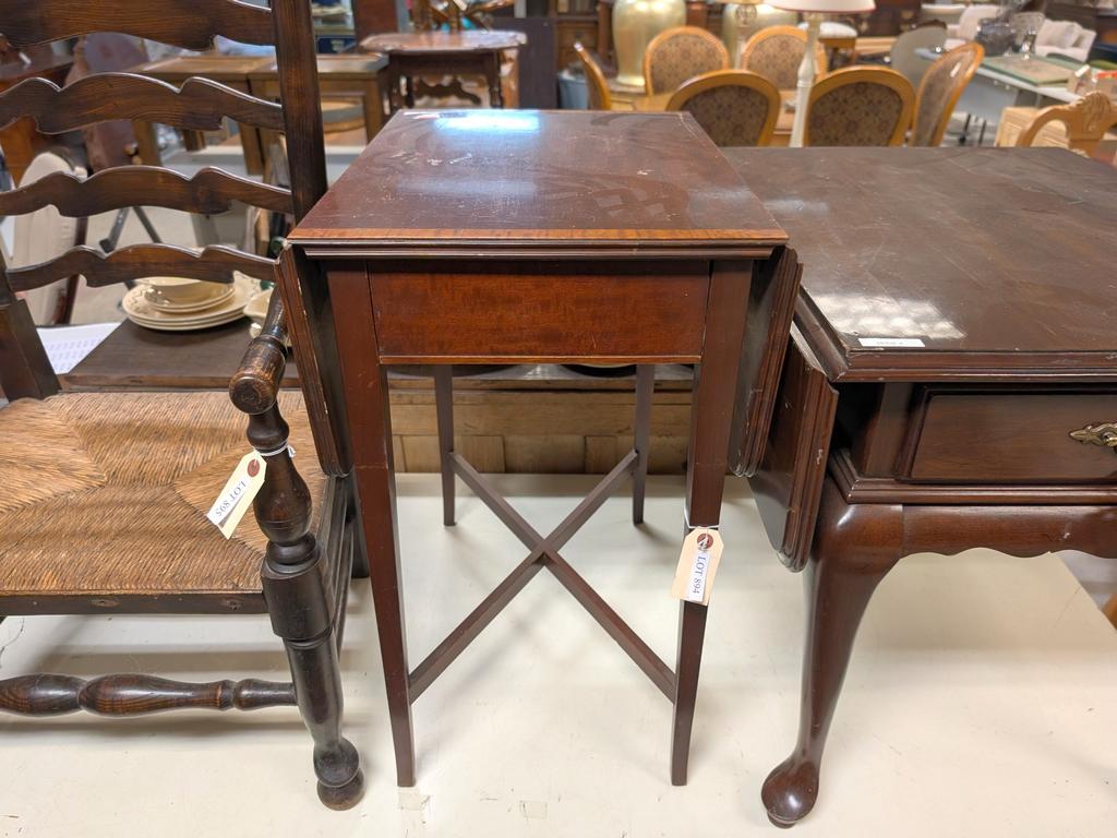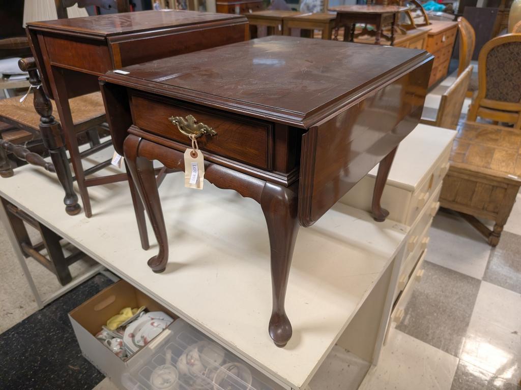 Lot 893: Ethan Allen Mahogany Drop Side Table with Single Drawer.
