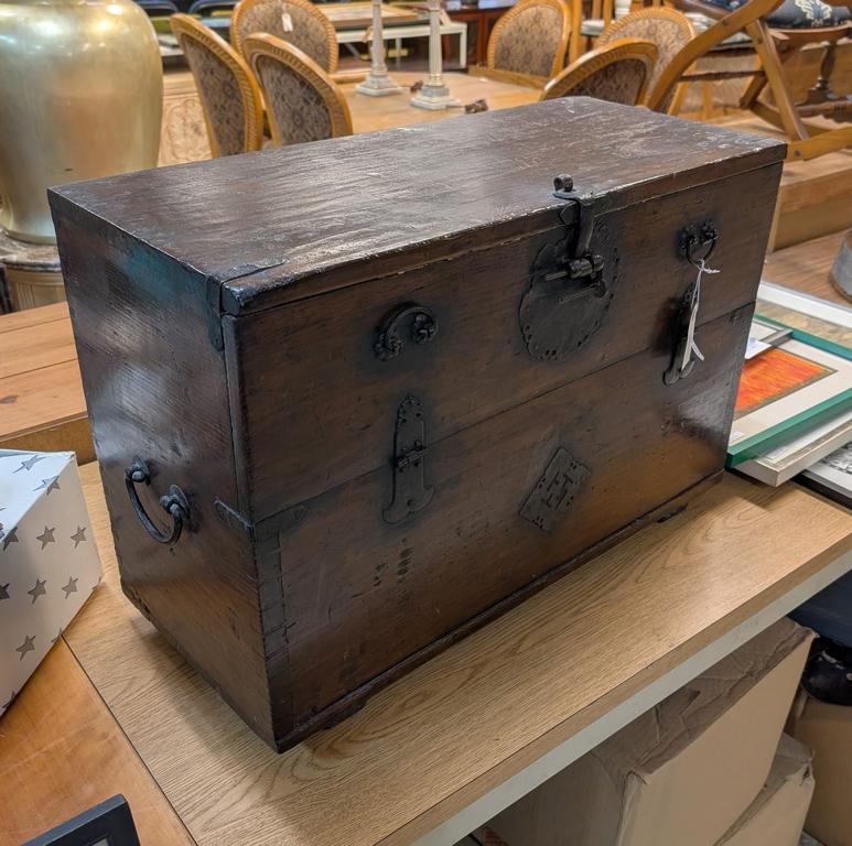 Lot 902: Asian Tansu Style Drop Front Storage Chest. 28" W, 13" D, 19" H.