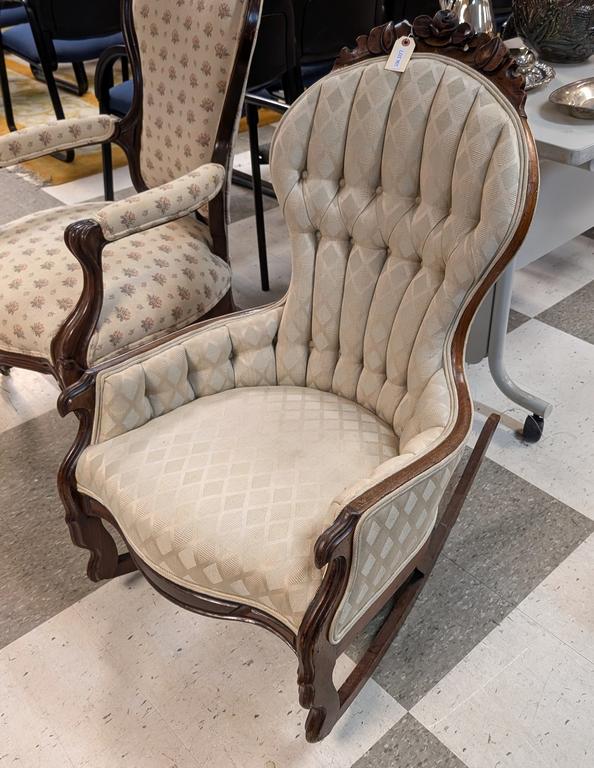 Lot 905: Eastlake Style Rocker with Checkered Upholstery.
