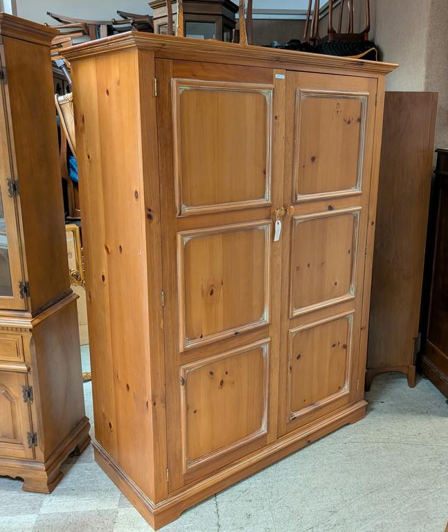 Lot 913: Knotted Pine 2-Door Wardrobe.