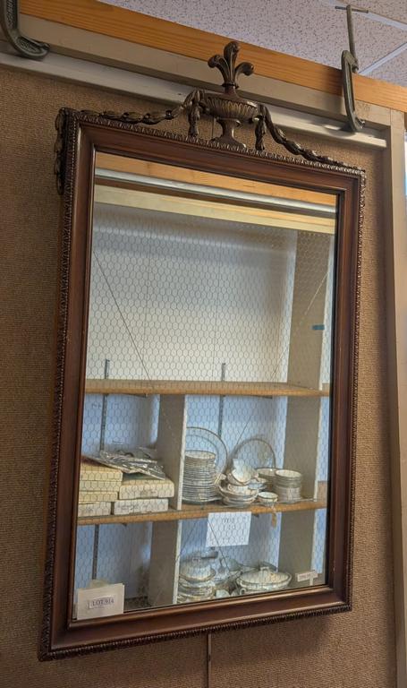 Lot 914: 1930s Mahogany Framed Beveled Mirror.