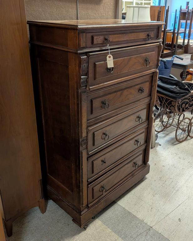 Lot 915: 19th C. 6-Drawer Wellington Chest with Drop Front Drawer.
