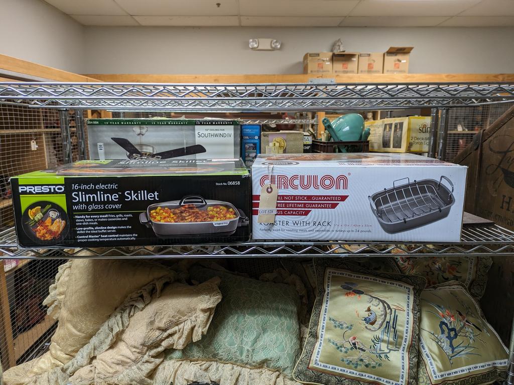 Lot 528: Slimline Skillet With Glass Cover And Circulon Roaster With Rack.