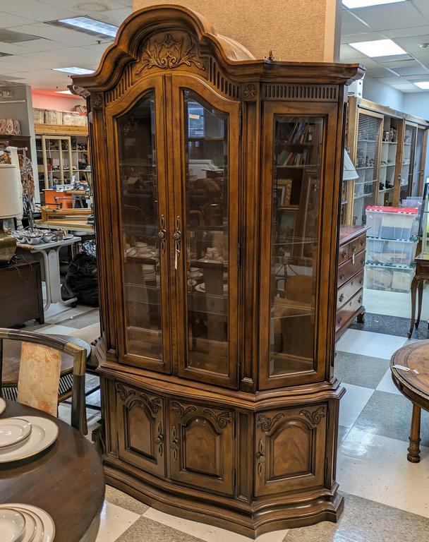 Lot 632: White Furniture Contemporary China Cabinet. Glass Front 3-Shelf Top, 4-Door Bottom.
