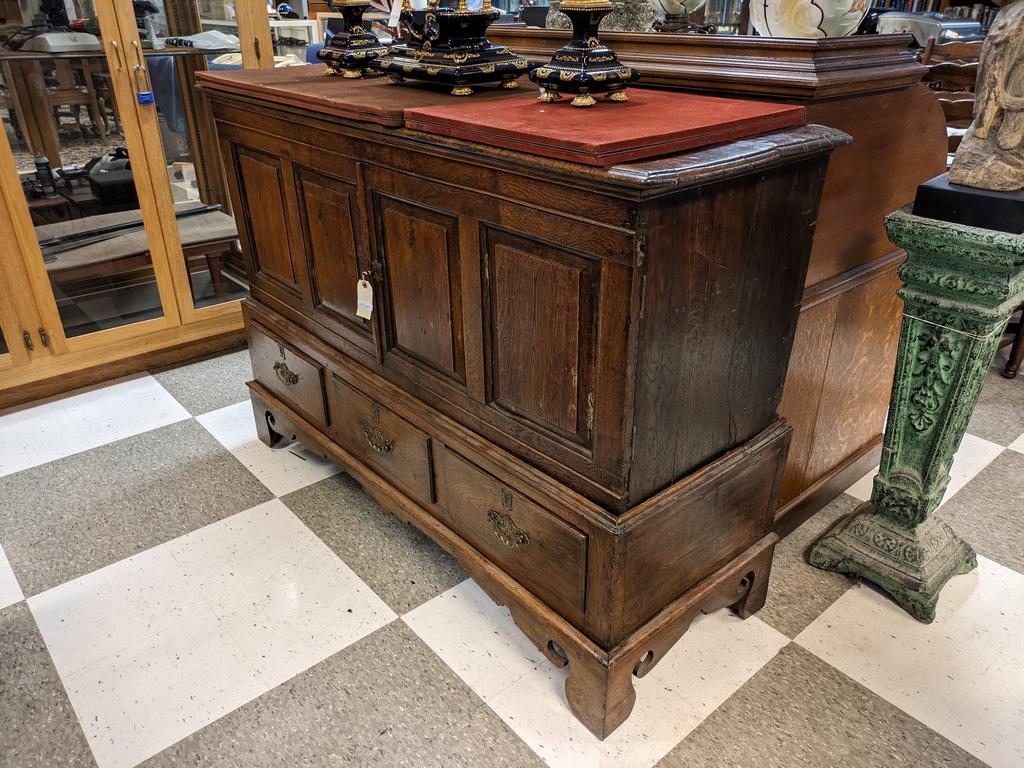 Lot 645: 19th C. Oak Panel Front 2-Door Coffer With 3 Drawers.