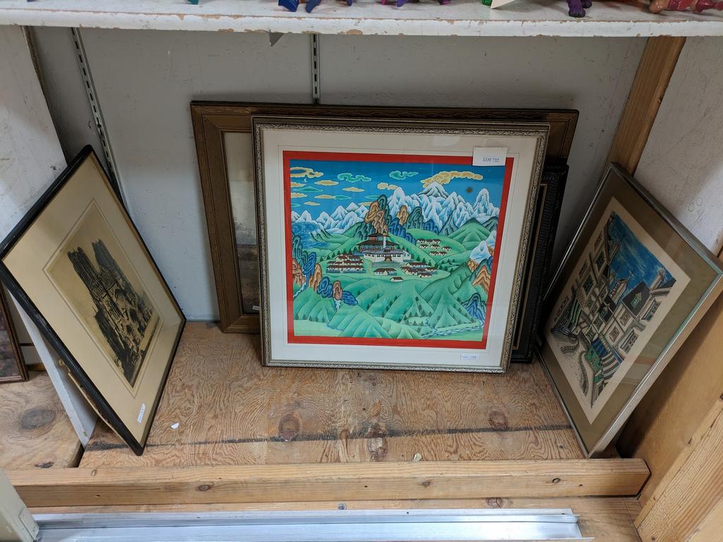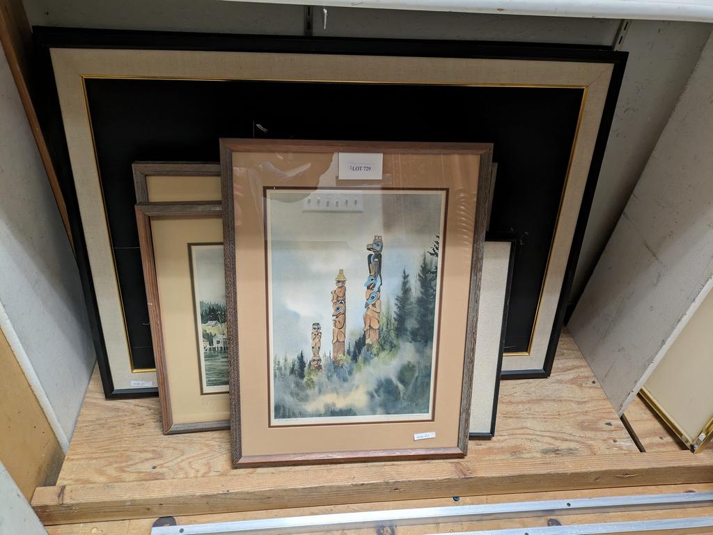 Lot 738: Group Of Framed Artwork (5) And 2 Wall Mirrors.