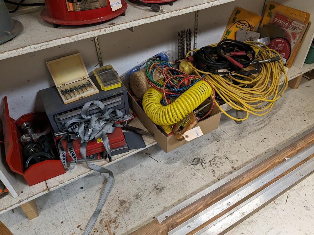 Lot 871: Shelf Of Asstd. Tools And Cables.