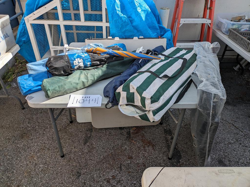 Lot 1040: Hammock, Umbrellas And Folding Chairs.
