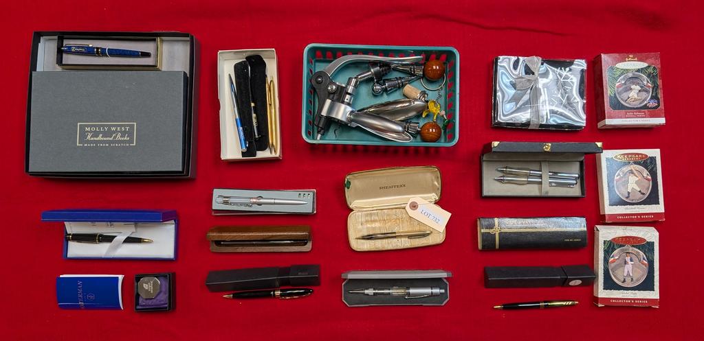 Lot 732: Group of Pens, Corkscrew and Collectibles Incl. Waterman and Bettoni Rollerball Pens.