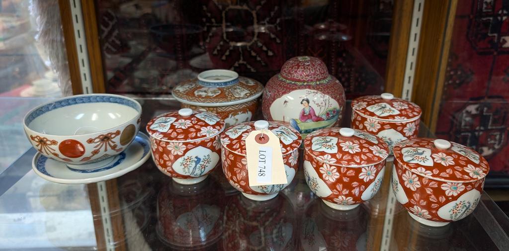 Lot 748: (8) Asian Porcelain Lidded Vessels Incl. Rice Bowls, Urn.
