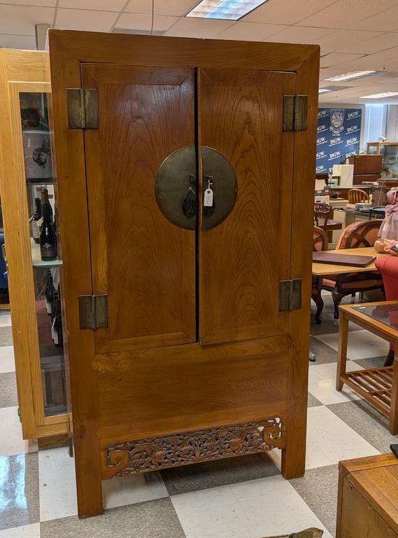 Lot 359: Chinese Carved Tall Wardrobe Cabinet.