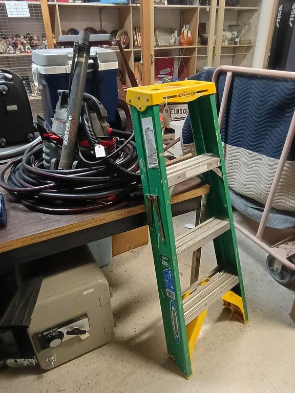 Lot 857: Shelf Of Tools Incl. Husky Wet Dry Vac, Step Ladder.